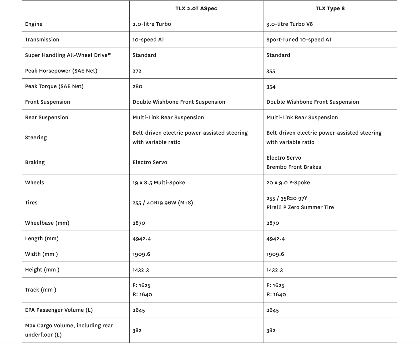 • TLX A-Spec receives styling enhancements and increased cabin quietness
