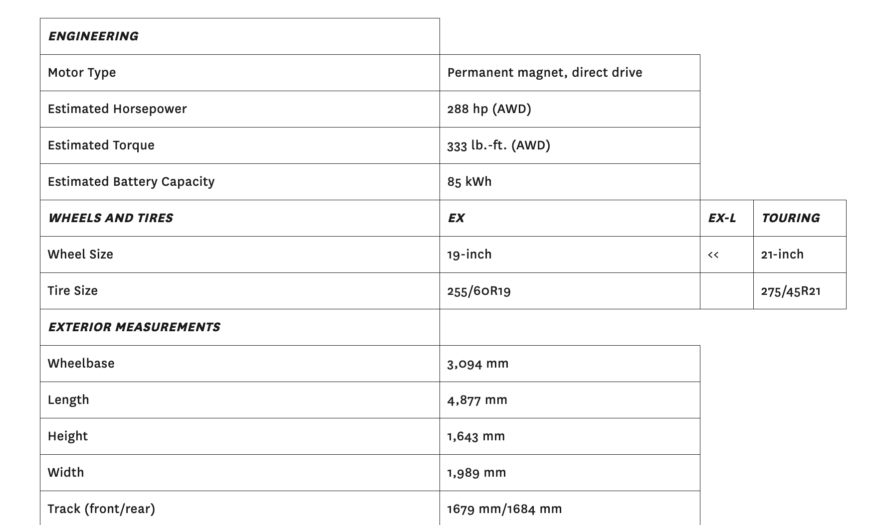 2024 Honda Prologue Key Specifications and Features