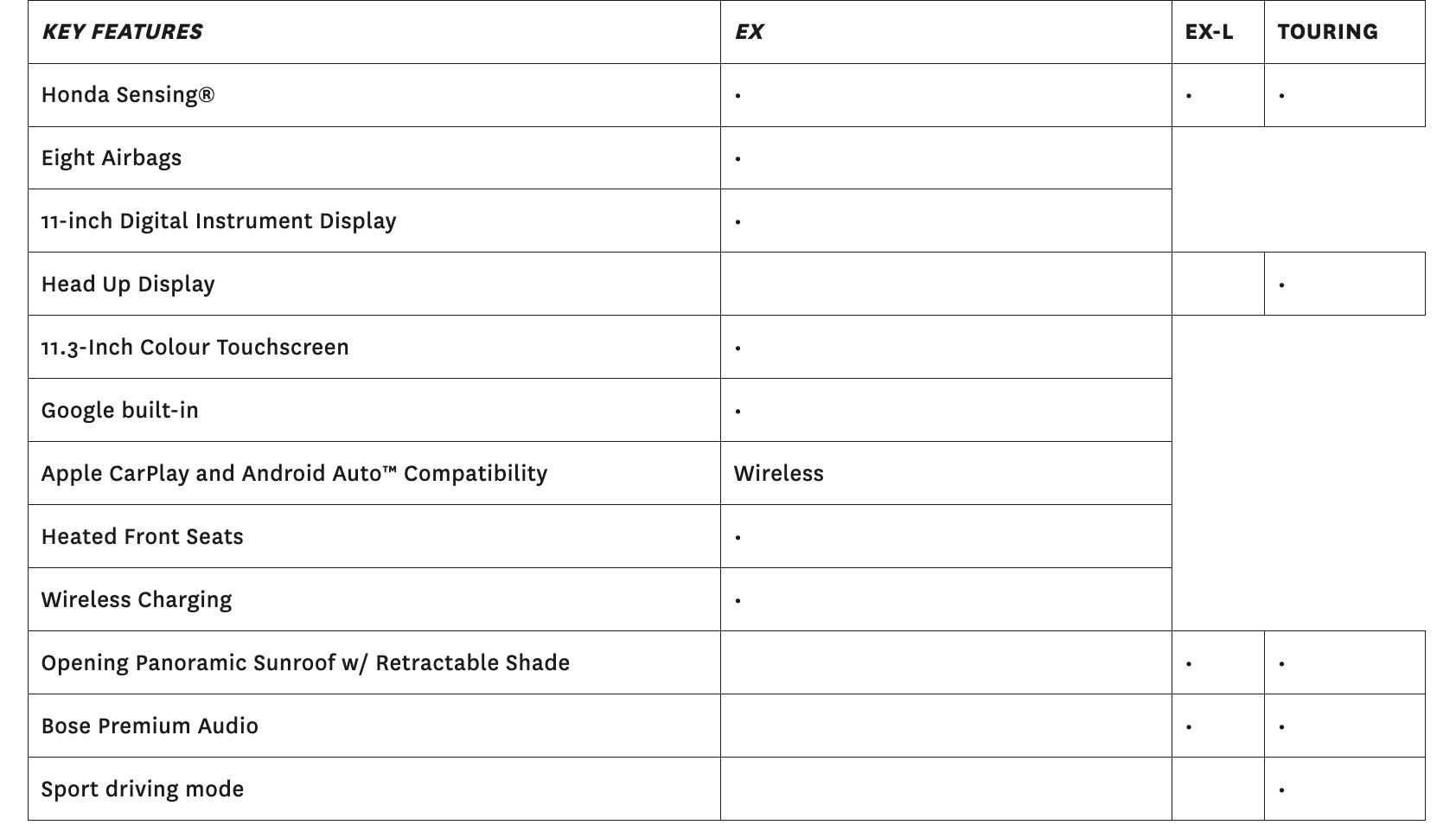 • Complements Honda SUV lineup with fun-to-drive dynamics and generous interior space